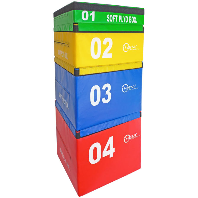 | A készletet kifejezetten ugrásképzésre tervezték és széles körben használják. Segít az ügyfélnek olyan edzést végezni, amelyben az izmok rövid időközönként maximális erőt fejtenek ki, azzal a céllal, hogy növeljék a lábak teljesítményét . A speciális ismételt ugrás robbanékonysága fejleszthető ezzel a termékkel. A puha plyo dobozok készlete 4 különböző méretű dobozból áll, amelyek nagy teherbírású vinil anyagból készülnek, és belsejük nagy sűrűségű EVA lappal van feltöltve. Az egyes dobozok alapjai azonos méretűek (60 cm * 60 cm), de magasságuk eltérő, és ennek megfelelően 15 cm, 30 cm, 45 cm és 60 cm. A készlet minden doboza speciális tépőzáras hevederekkel rendelkezik, amelyeket egymásra rakhatsz és csatlakoztathatsz, hogy elkerüld a mozgásukat gyakorlatvégzés közben. |